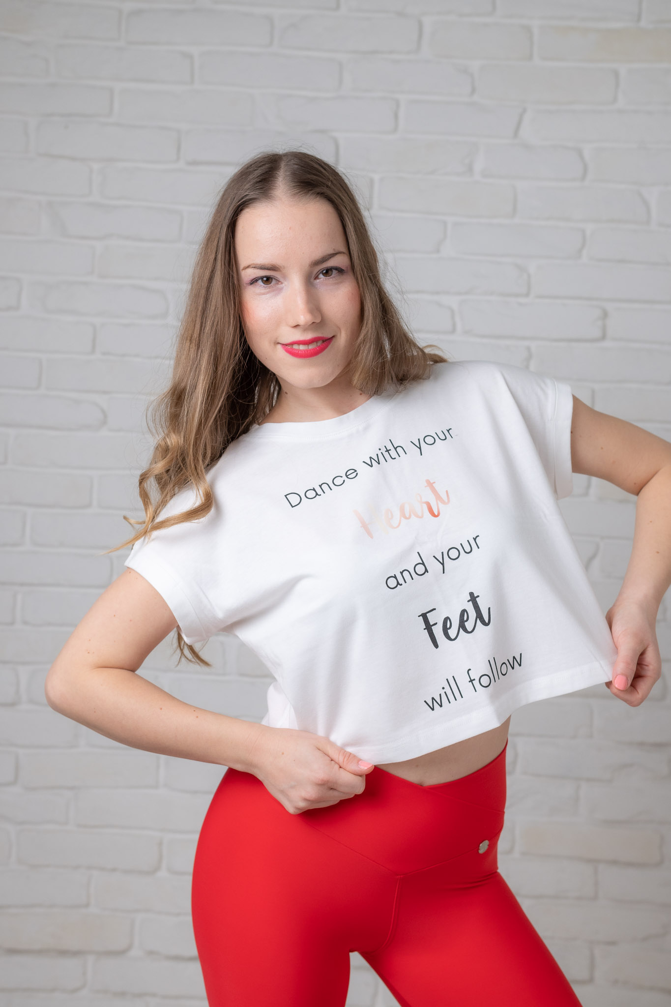 Mirada, Andrea crop pamut póló, fehér, puha, természetes anyagból, kerek nyakkivágással, nyomott grafikával.
